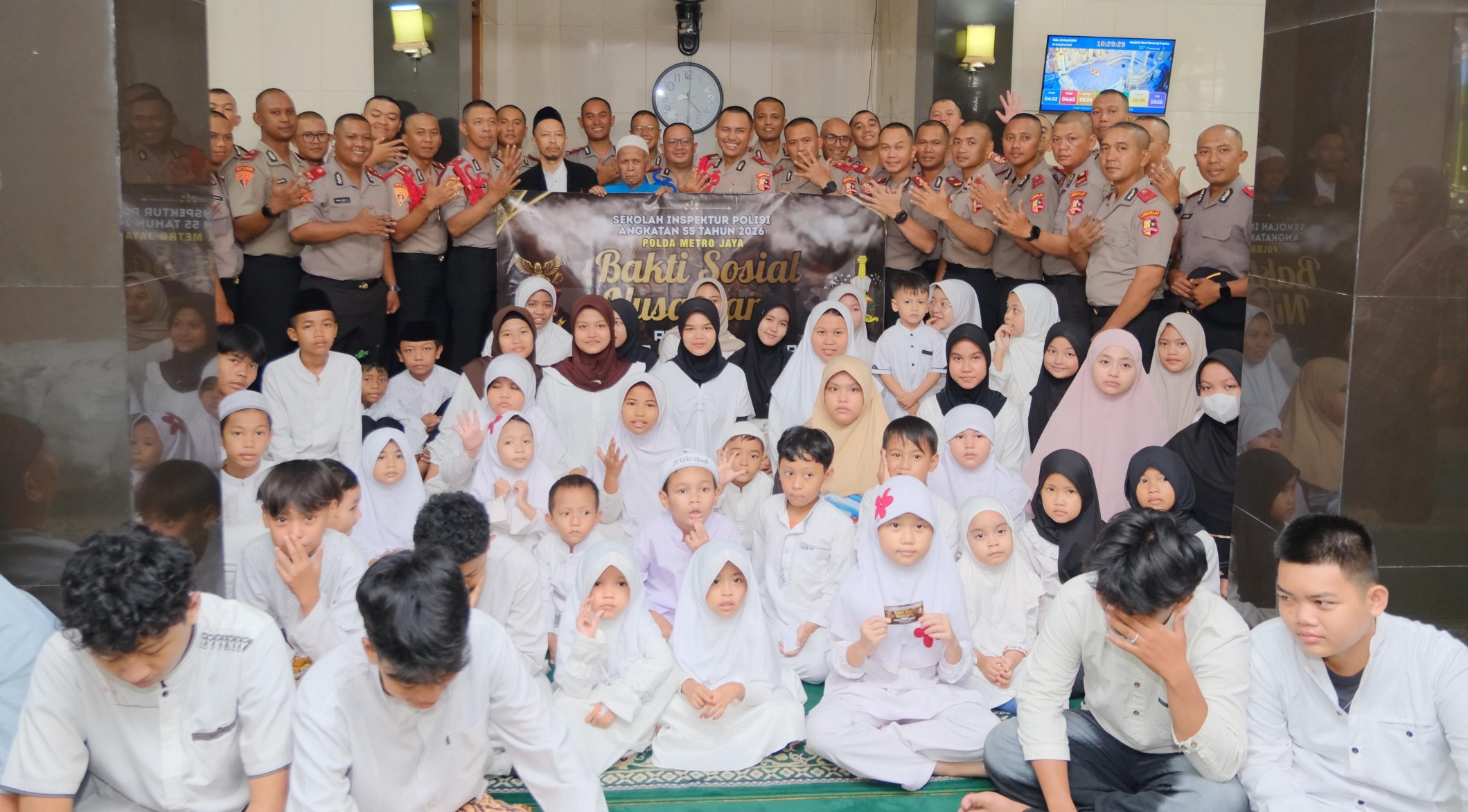 RN, JAKARTA – Puluhan siswa SIP angkatan 55 tahun 2026, yang berasal dari Polda Metro Jaya, melaksanakan bhakti sosial dan santunan anak yatim, di Masjid Al Abror, Jalan Bangka VII Dalam, Kelurahan Pelamampang, Kecamatan Mampang Prapatan, Jakarta Selatan, Rabu (18/3/2026).