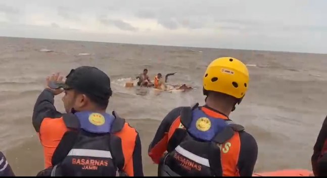RN, JAMBI – Tim SAR Gabungan yang terdiri dari Personil Unit Siaga SAR Tungkal, Polariud,TNI AL, dan PMI menyelamatkan tiga Anak Bush Japan (ABK) yang kapalnya dihantam ombak dan ttenggelam di Perairan Kuala Duri, Kabupaten Tanjung Jabung Barat (Tanjabbar) Kamis (8/1/2026)